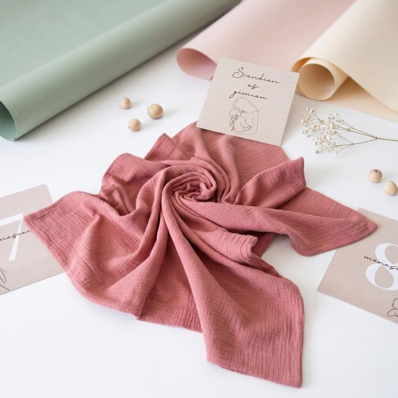 Dvigubas pledukas kūdikiui iš muslino, terakota spalvos